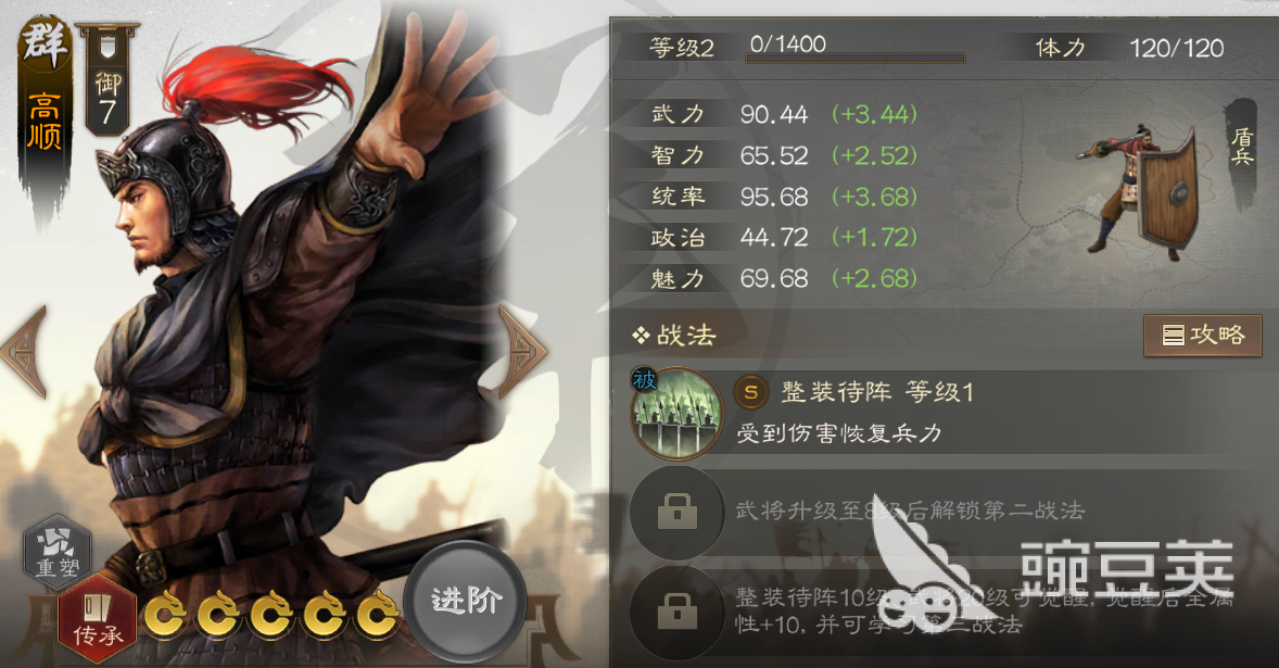 程普:性价比较高的一个前排,统御只占五点,却有着不输很多7御名将的统率,此外,他的战法是一个极为标准的防御型战法,不仅自带免伤,而且还能够在受到攻击后降低敌人的武力和智力属性,要知道这两项属性都是影响输出的,减少之后己方的生存环境会得到整体加强。