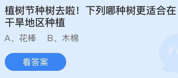 问题1:植树节种树去啦!蚂蚁下列哪种树更适合在干旱地区种植?庄园最新