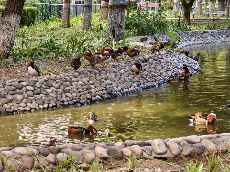 工作人员又在水中为它们搭建了一个小棚子,供它们歇脚和躲避风雨。这回鸳鸯很喜欢,它们经常在棚顶晒太阳。“我们还在小棚子旁边搭建了横杆,开始刷成蓝色,它们不站上去,后来刷成灰色,它们经常排成一溜儿站在上面,特别好看。”苏先生开玩笑地说,鸳鸯对颜色的挑剔,是他们在实践中摸索出来的。