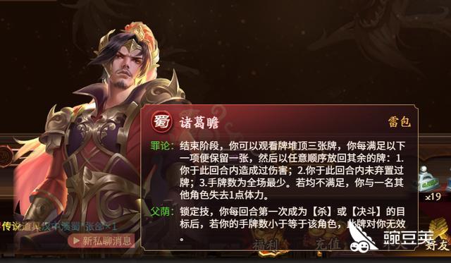 要論2V2誰(shuí)比大乔曹仁更嘔心?我第一個(gè)推薦诸葛瞻!餓不死殺少于,有桃很怕留,裝備很怕上(尤其是+1馬)通常有诸葛瞻在場(chǎng)的局全都是15分鐘向上,除非你們太歐诸葛瞻太非.......要想任意一打二嗎?要想嘔心死人不償命嗎?請(qǐng)選诸葛瞻吧~