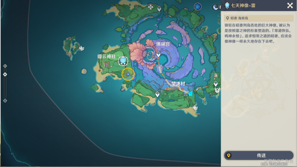 6、传送到海祇岛神像,往南方向飞。