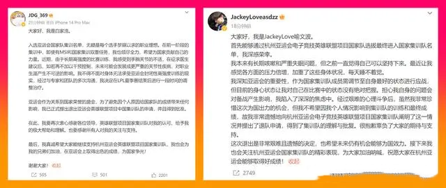 1、亚运7月4号JackeyLove和369都在微博上发布了退赛生命,退出两人的亚运官方解释都是因为身体不好而退赛的。