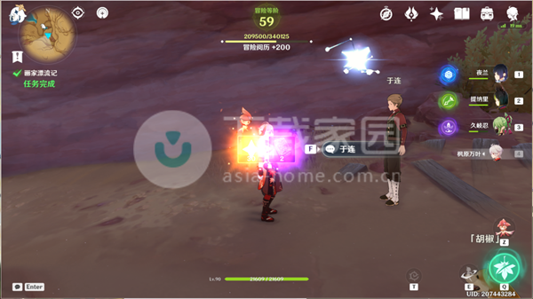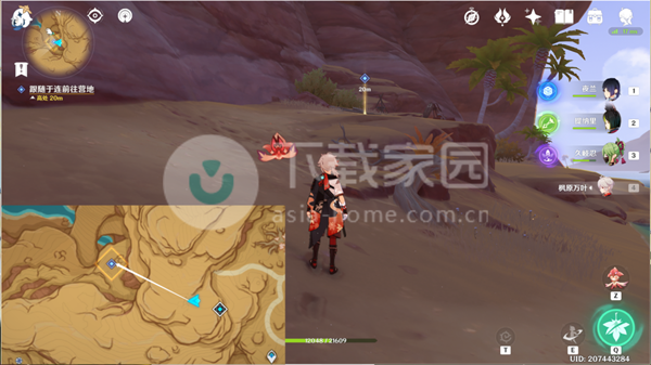 1、记第借助四叶印朝着西北方向飞过去,天任来到营地中跟于连对话。原神