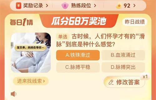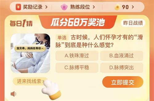 以上就是怀孕古时候,人们怀孕才有的滑底种滑脉到底是种什么感觉问题的答案一览,大家可进入软件当中进行答题即可。什感