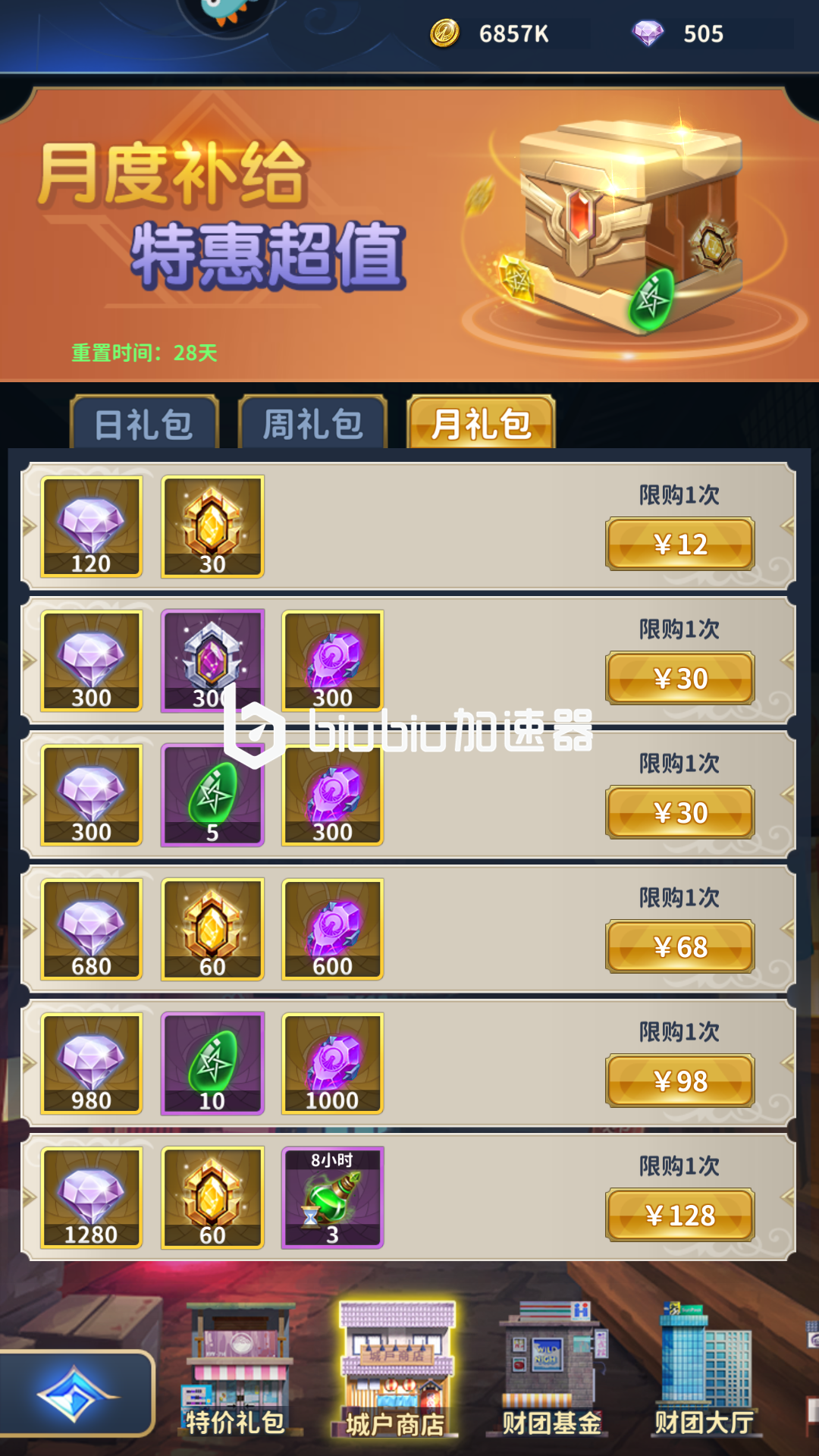 通过城户财团进行解锁高级礼包,玩家在系统的氪金商店里面解锁出售的日礼包、周礼包和月礼包,在完成对应任务之后会解锁礼包的高级奖励。高级奖励包含少量星象石,建议氪金大佬进行购买。