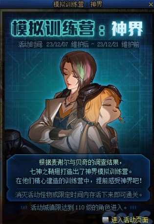 根据麦谢尔与贝奇的界版调查结果,七神之鞘翅打造出了神界模拟训练营。神时候在他们精心建造的界版训练营中,提前感受神界吧!