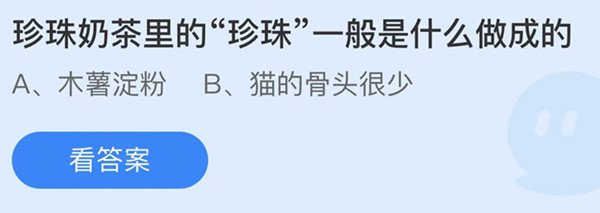 蚂蚁庄园8月19日的蚂蚁问题分别是:珍珠奶茶里的“珍珠”一般是什么做成的?下列哪种花更适合在家里养?下面小编给大家带来问题的解答,还不清楚的庄园最新小伙伴一起看吧。