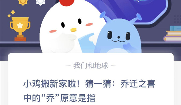 问题3:小鸡搬新家啦!月日猜一猜:乔迁之喜中的答案“乔”原意是指?