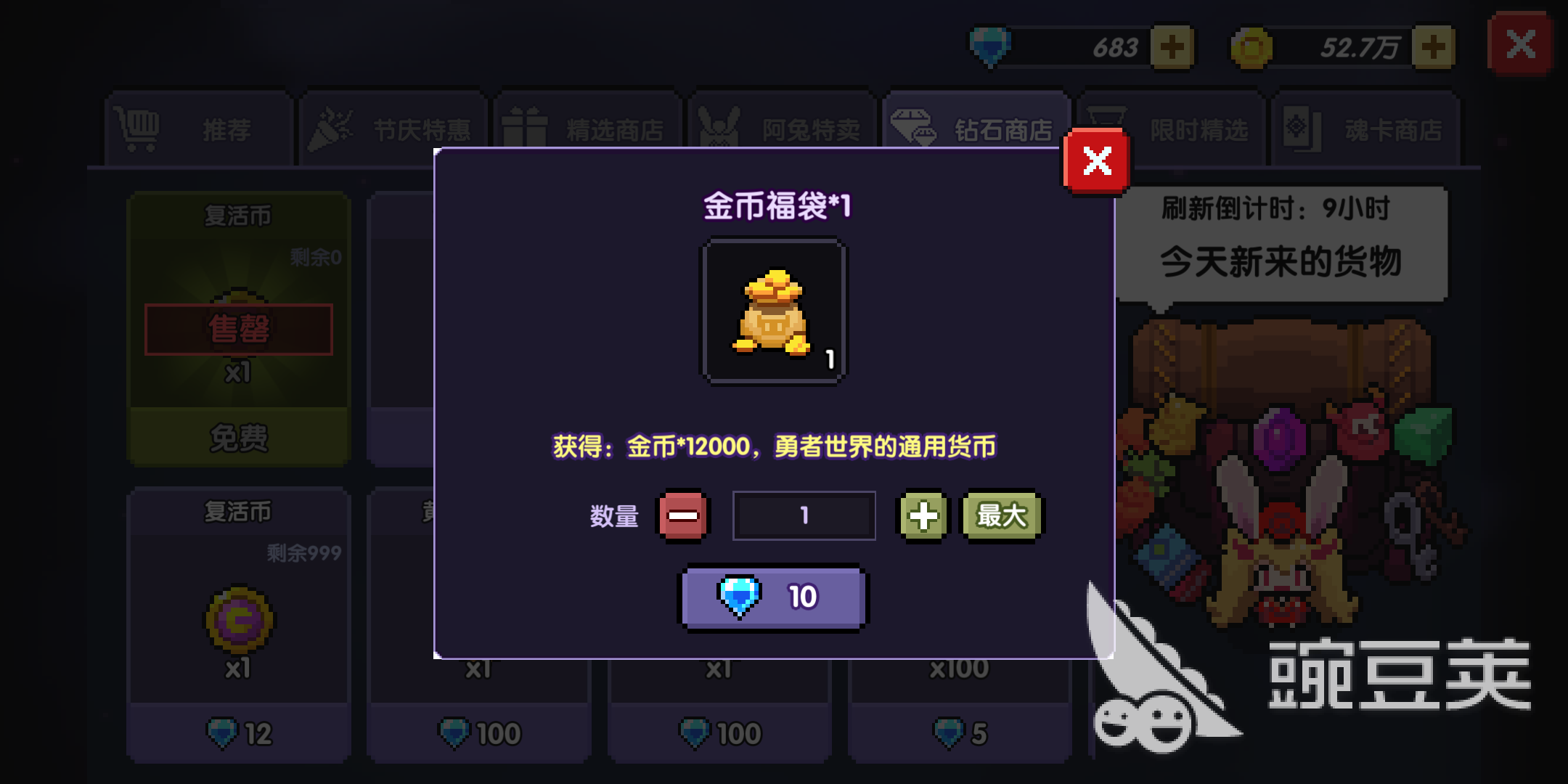 通常来说,冒险关卡的层数越高,通关所掉落的金币总量也就越多,一般在500~1000左右。如果玩家嫌刷关攒金币麻烦的话,也可以直接在阿兔商店中花费10钻石购买金币福袋,打开即可获得12000金币。金币福袋属于限购商品,每天最多可购买999个,并且如果商品列表中没有福袋也需要花费钻石进行刷新哦!