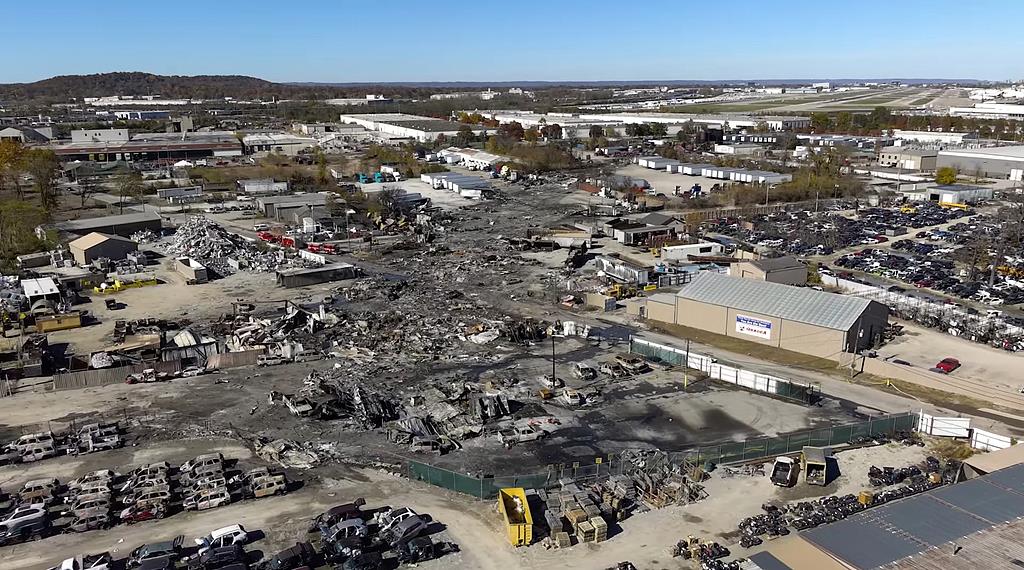 △美国路易斯维尔国际机场货机坠毁事故现场