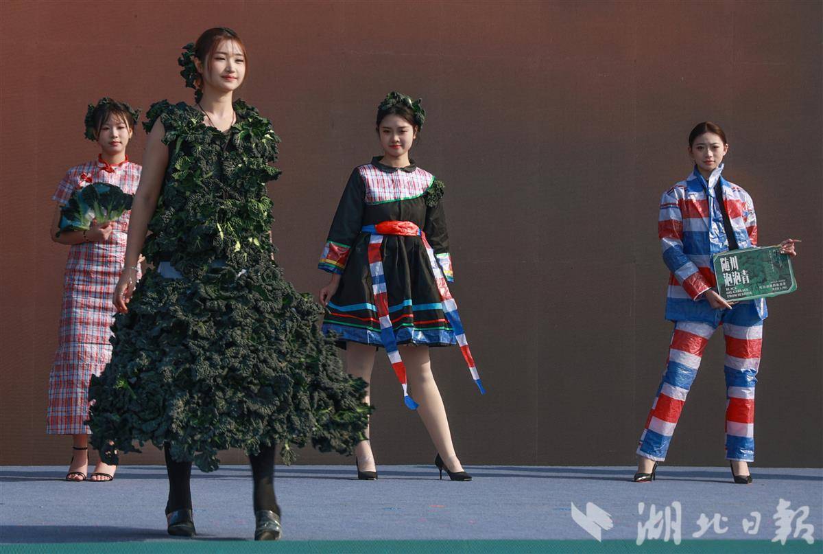 一场以“青绿为衣”的时尚秀,正在舞台上演,模特身着泡泡青主题的服装,向各位展示随州泡泡青的无限魅力。