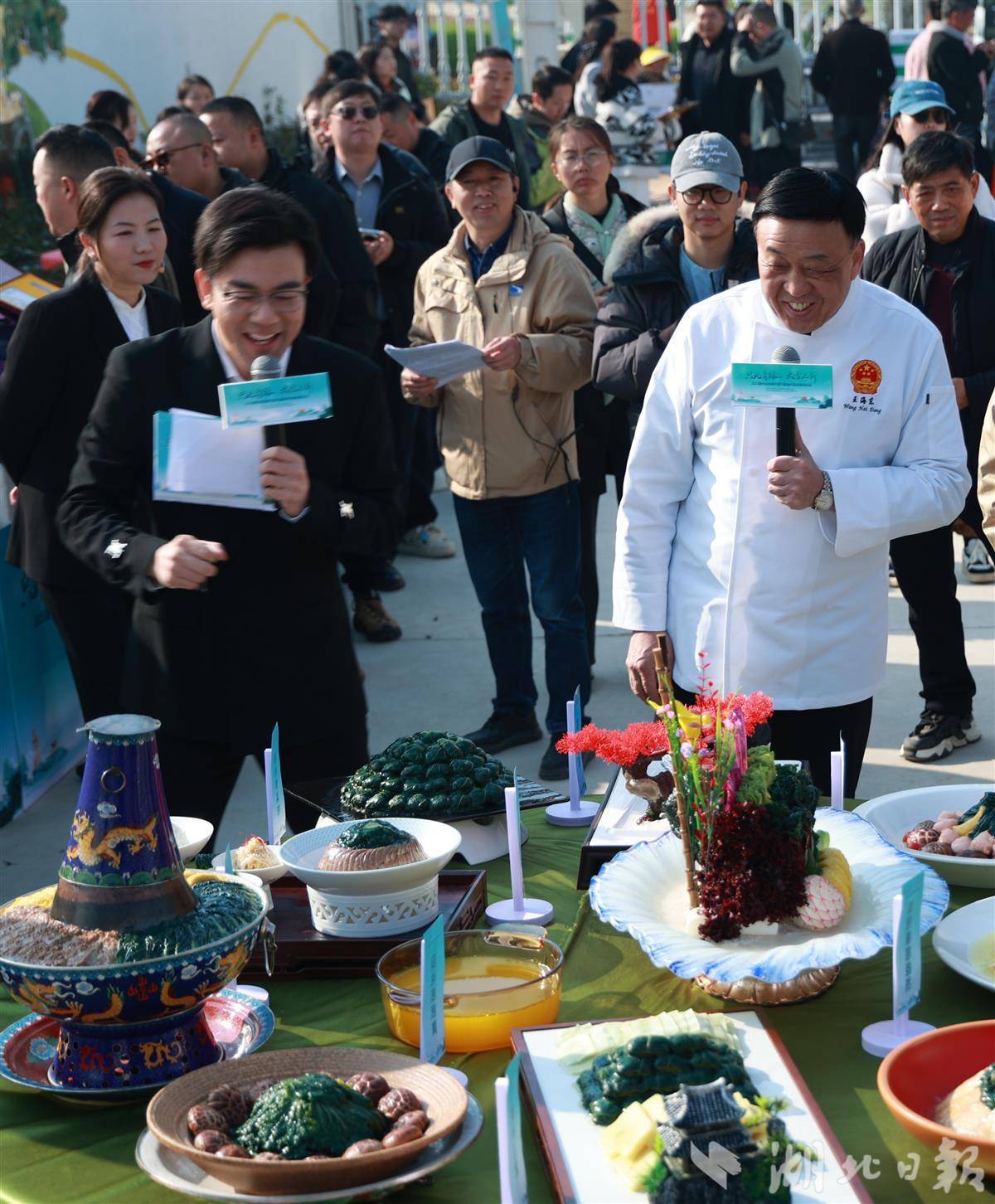 烹饪大师王海东介绍“泡泡青宴”,泡泡青能冷盘,能热炒,能做汤、能入馅,泡泡青也可以登上大雅之堂。