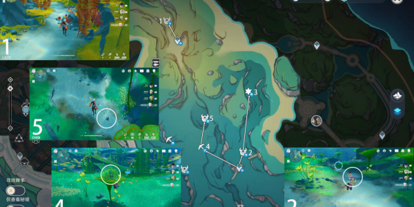 2、到达之后需去往1、宝箱2和5的攻略位置找到魔物镇守的宝箱并获得宝箱1、宝箱2和宝箱5;
