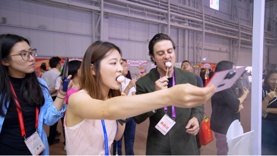 “太好吃了!再来一个”意大利主播在逛展的时候,品尝完达濠鱼丸后赞不绝口。