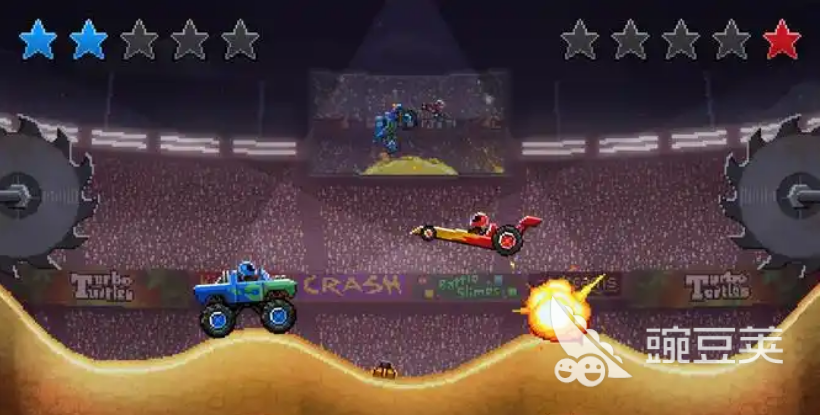 如果玩腻了双人合作的游戏,不妨来体验一下这款,这是一款双人对抗式物理碰撞游戏,游戏采用了复古像素画风,但是加入了非常夸张的物理特效,玩家需要驾驶自己的赛车去碰撞对方的车,使对方赛车手头部着地或者直接压杀对方。游戏内有丰富的车辆种类选择,而且也支持玩家对自己所选车辆进行改装,而且比赛场地的地图种类也有很多,像是容易翻车的山地,四周环海的海洋擂台等。