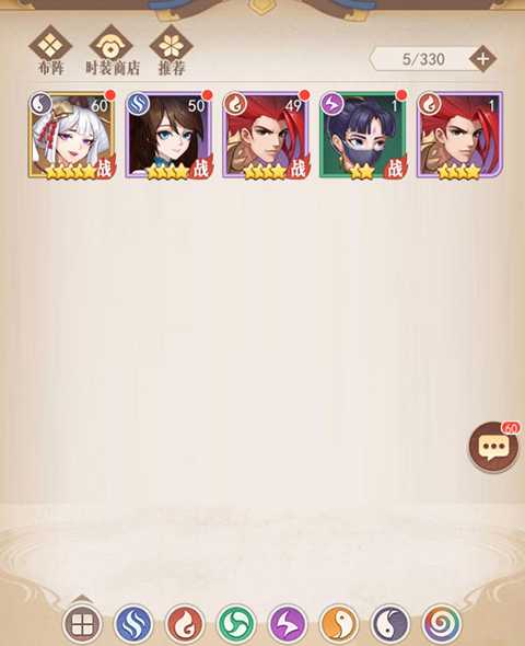 游戏内有着风、火、水、雷、阴、阳六种阵营英雄。
