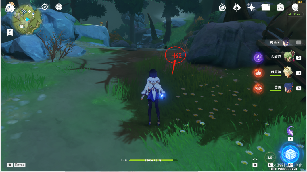 2、原神传送到无妄引咎宫,林中去林中寻找遗落的小书书。